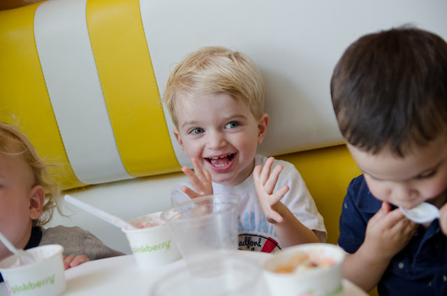 Today, the moms and I met up at a local splash pad with the boys but none of them were all that interested in the splashing. They were much more interested in their picnic lunches, making us chase them and our dessert trip to Pinkberry.